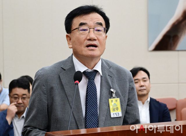 아시아투데이 이병화 기자 = 조능희 전 MBC플러스 사장이 9일 국회 과학기술정보방송통신위원회에서 열린 불법적 방송문화진흥회 이사 선임 등 방송장악 관련 청문회에서 이상휘 국민의힘 의원 질의에 답변하고 있다.