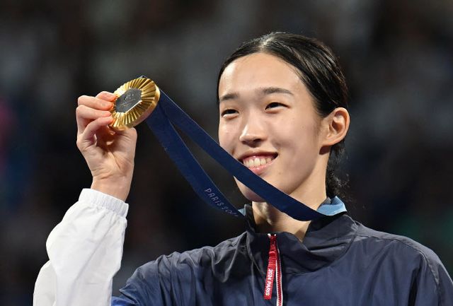 김유진은 9일(한국시간) 프랑스 파리의 그랑팔레에서 열린 2024 파리올림픽 태권도 여자 57kg급에서 나히드 키야니찬데(이란)를 라운드 점수 2-0(5-1, 9-0)으로 꺾고 금메달을 목에 걸었다.