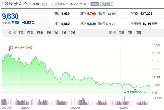 LG유플러스는 올 2분기 연결 기준 매출액이 3조4937억원, 영업이익은 2540억원을 기록했다고 지난 7일 잠정 공시했다. 매출액은 전년 동기 대비 1.9% 증가했지만, 영업이익은 11.8% 감소했다.