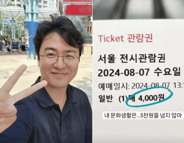 2024년 8월 7일 최동석은 자신의 SNS에 전시관람권 티켓과 함께 "내 문화생활은 5천 원을 넘지 않아"란 글을 올리며 4,000원이라는 가격을 공개했습니다.