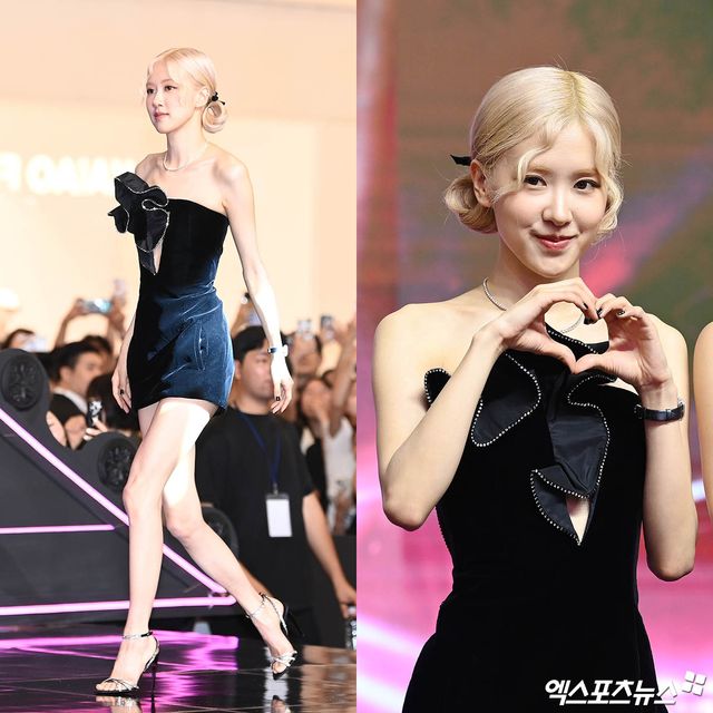 이날 행사에 참석한 블랙핑크 로제가 포토타임을 갖고 있다.