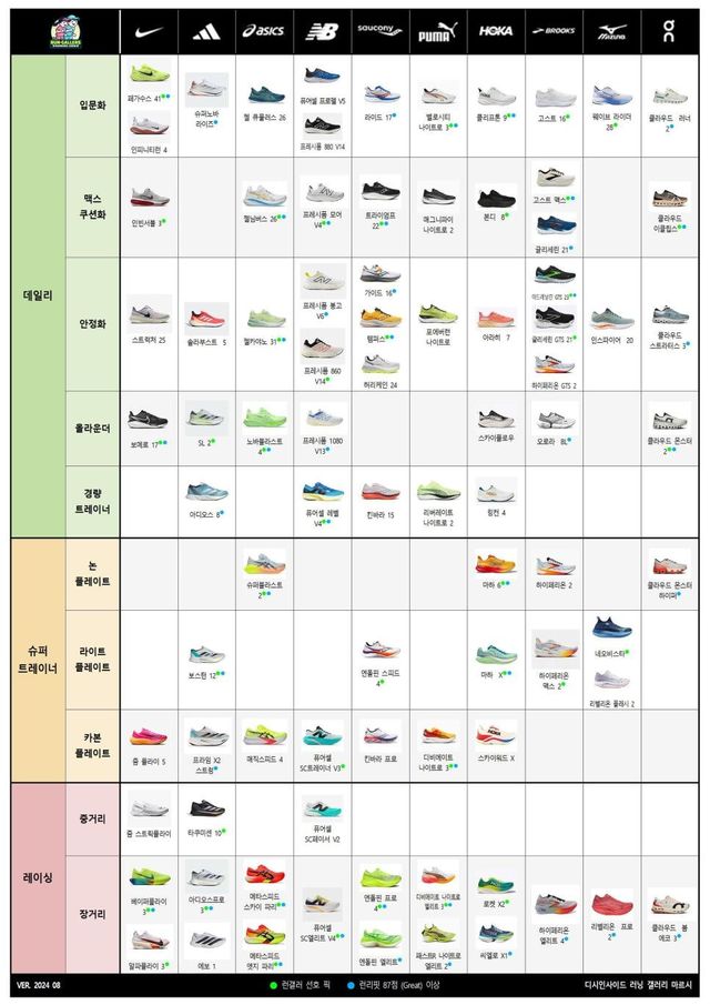* 2024년 8월 5일 기준으로 출시된 러닝화까지만 포함하여 작성했습니다.