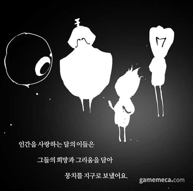 이런 모바일게임이 대세인 시대에, 내면의 어두운 감정을 직시하면서 위로가 되는 스토리를 다룬 내러티브 모바일게임 ‘뭉치’가 텀블벅에서 펀딩을 시작했다. 흑백과 선이 교차하는 단순하면서도 기괴한 디자인과 악몽이 모였다는 캐릭터 등 설정에서 개성이 강하며, 아름다운 꿈이 되기 위해 인간을 탐구한다는 철학적 방향성이 담겼다.