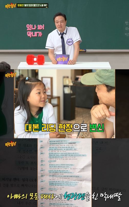 멤버들은 "그 막내였던 아기가..."라고 감탄했고, 정웅인은 "다윤이 이제 6학년이다"라며 함박 웃음을 지었다. 이에 이수근은 "딸 얘기할 때는 선해 보인다"라고 말해 폭소를 자아냈다.