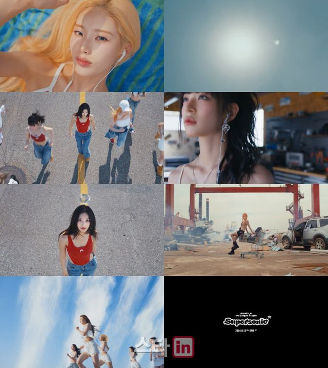이날 오후 9시 공식 SNS와 하이브 레이블즈 유튜브 채널 등에 게재된 ‘슈퍼소닉’ 뮤직비디오 티저는 뜨거운 태양 아래 누워 있는 멤버 지원의 모습으로 시작한다. 이어 어딘가를 향해 달려가는 다른 멤버들 사이로 중력을 거스른 물방울이 피어올라 떠돈다.