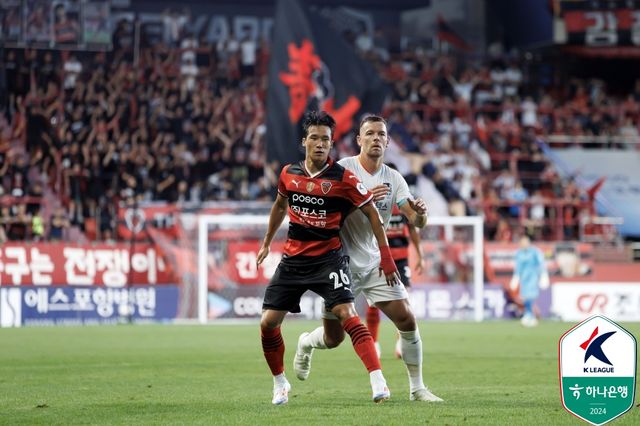 포항은 11일 스틸야드에서 열린 FC서울과의 '하나은행 K리그1 2024' 26라운드 홈 맞대결서 1-2로 졌다. 조영욱에게 선제골을 내준 포항은 후반 초반 전민광의 동점골로 따라붙었지만 포항 출신 이승모에게 결승골을 내줘 아쉽게 패했다. 포항은 4위(12승8무6패·승점 44)를 유지했다.