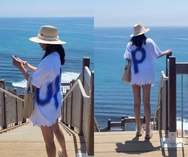 공개된 사진에는 미국 캘리포니아에서 여유를 즐기는 김희선의 모습이 담겼다. 오버핏의 화이트 티셔츠를 입은 김희선은 47세의 나이가 믿기지 않는 늘씬한 각선미를 뽐내 보는 이들의 시선을 사로잡았다.