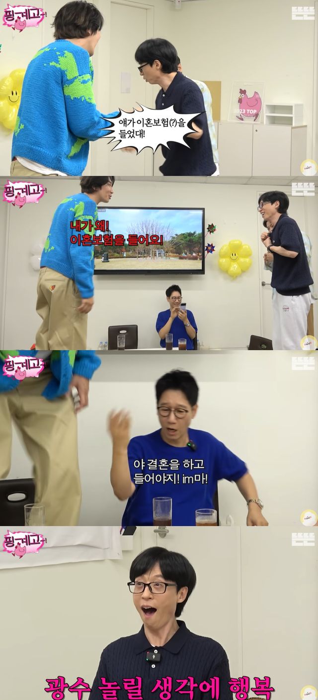 이광수는 "이혼 보험을 들었다는 게 아니다. 내가 왜 이혼 보험을 드냐"며 검토 중인 드라마 제목임을 설명했다.