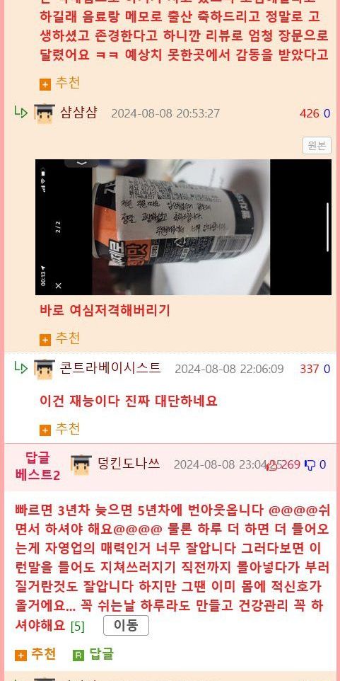 +음료수 같이 챙겨서 보내드림.