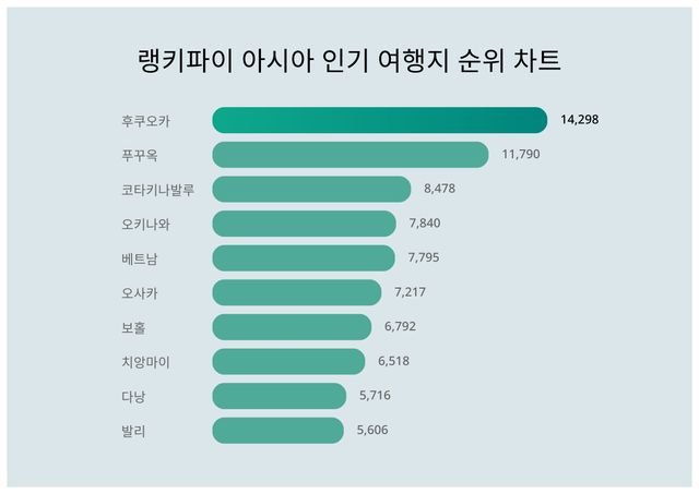 먼저, 후쿠오카가 선두를 달리고 있다. 후쿠오카는 아시아 인기 여행지 내 14,298포인트를 기록해 1위로 꼽혔다.