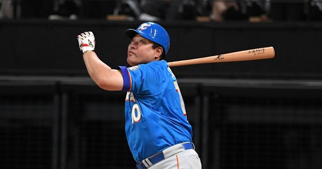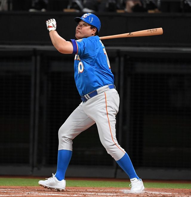 지난달 22일 일본 홋카이도 에스콘필드에서 열린 한일 드림 플레이어즈 게임. 2회 초 1사 만루 양준혁이 1타점 희생플라이를 치고 있다. / 뉴스1