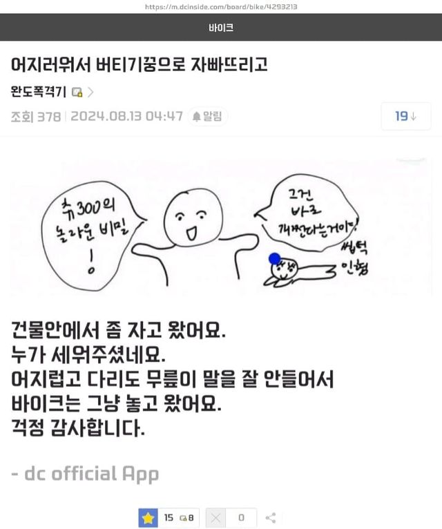 사고난 줄 알았는데 어지러워서 자고 왔다고 함