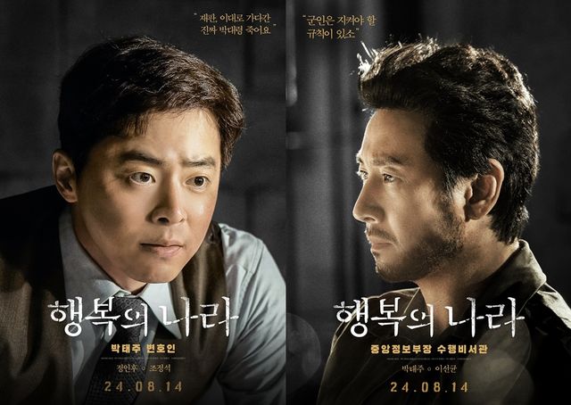 '행복의 나라'는 1979년 10월 26일, 상관의 명령에 의해 대통령 암살 사건에 연루된 박태주(이선균 분)와 그의 변호를 맡으며 대한민국 최악의 정치 재판에 뛰어든 변호사 정인후(조정석)의 이야기를 그린다.