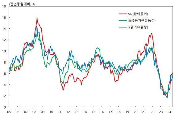13일 한국은행이 발표한 '2024년 6월 통화 및 유동성'에 따르면 6월 광의통화(M2) 평잔은 4037조6000억원으로 전월 대비 23조5000억원(0.6%) 증가했다. 지난해 말 이후 6개월 만에 최대 증가 폭이다.