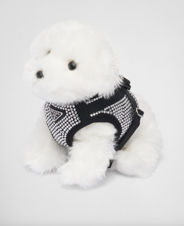반려견을 산책시킬 때 반드시 필요한 용품 중 하나가 하네스죠. 프라다에서 선보이는 하네스는 크리스털 장식을 더해 화려하게 마무리했는데요. 가슴 중앙 부분에 브랜드의 시그너처인 삼각형 로고도 더했습니다. 어디서나 시선을 집중 받는 것을 좋아하는 강아지를 위한 하네스로 제격이겠어요.