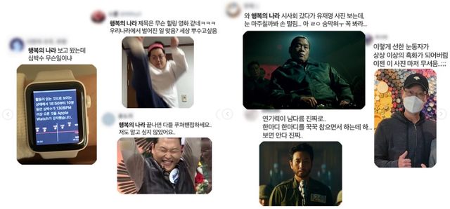 “행복의 나라 시사회 다녀왔는데 내 직장 상사 생각나서 더 화나네”, “상사 말이 다 옳은 건 아니다” 등의 반응과 함께 “이제 상사가 말도 안 되는 거 시키면 할 말 생김” 등 각성한 직장인의 모습까지 이어져 웃음을 자아낸다.