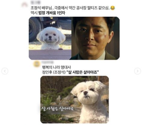 마지막으로 ‘법정 개싸움의 일인자’이자 박태주를 살리기 위해 재판에 뛰어든 변호사 정인후 역을 맡은 조정석에 대해서는 ‘찐 말티즈’ 상이라고 부르며 과몰입을 한 리뷰도 올라와 개봉 기대감을 더했다. 이외에도 “카라티만 보면 이선균 생각나서 눈물 난다”, “행복의 나라 후기 = 눈물의 나라” 등 실화를 바탕으로 한 작품이라는 점에 더해 영화적 상상력으로 채워진 웰메이드 영화라는 호평 리뷰도 업로드 됐다.