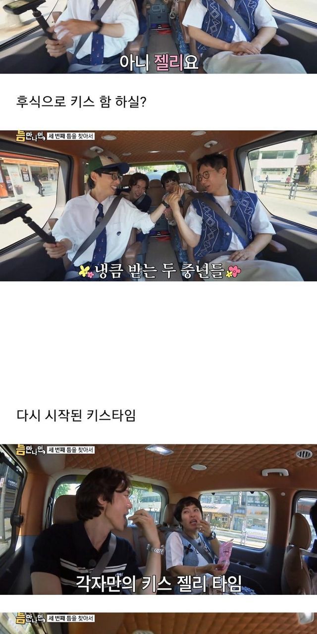 키스하는 느낌 나는 젤리 먹은 유재석, 지석진, 조혜련 반응