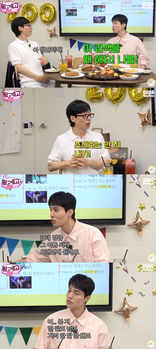 14일 유튜브 채널 뜬뜬 DdeunDdeun에는 '200만 기념은 핑계고'라는 제목의 영상이 올라왔다. 영상에는 유재석과 지석진, 이동욱, 남창희가 출연해 대화를 나눴다.