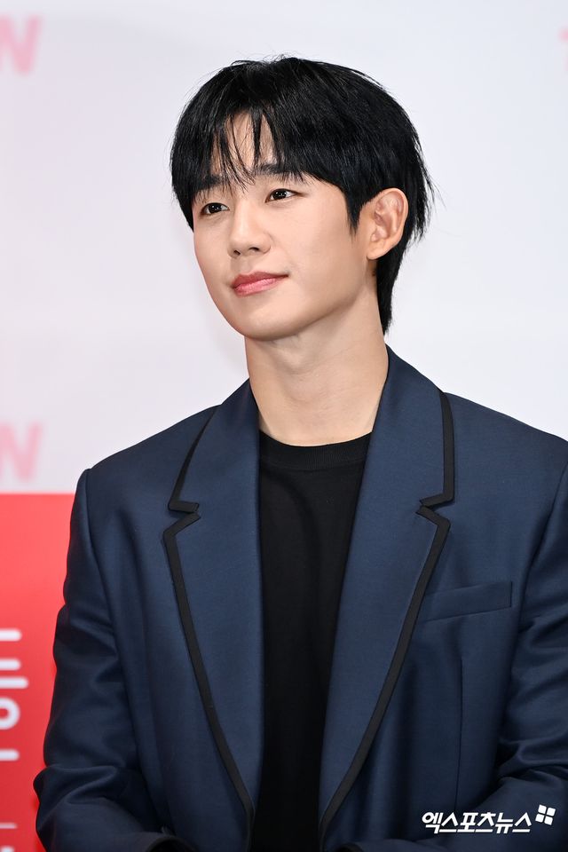 이날 제작발표회에 참석한 배우 정해인이 포토타임을 갖고 있다.
