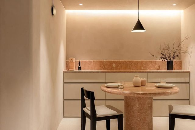 대리석을 사용하며 중후함과 세련됨을 동시에 표현했어요. 심지어 원형 다이닝 테이블은 대리석 자재를 활용해 직접 제작한 거라고. 세월의 흐름이 느껴지는 대리석이야말로 빈티지 클래식에 꼭 들어맞는 자재 아닌가요?