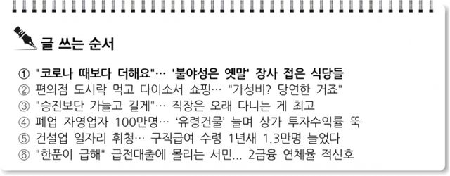 상황이 좋지 않은 것은 밤 장사도 마찬가지다. 신종 코로나바이러스 감염증(코로나19) 사태 이후 회식 문화가 달라졌다. 한 기업 임원 C씨는 최근 직원들에게 '119' 회식 원칙을 공지했다. '1차에 1가지 술로 밤 9시 전에 끝낸다'는 뜻이다. 호황기 때 아침 해가 뜰 때까지 이어지던 술자리가 요즘은 대부분 밤 10시도 되기 전에 파한다. 밤새도록 꺼지지 않는 간판들로 불야성을 이루던 번화가는 이제 옛말이 됐다.