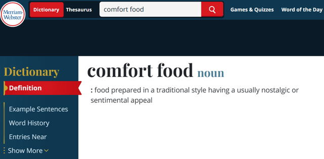 누군가 또는 특정 문화권 사람에게 향수를 불러일으키거나 위안을 주는 음식을 뜻하는 단어라
