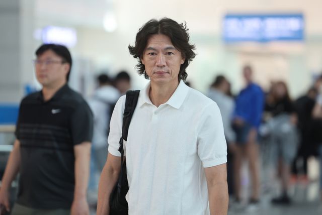 (영종도=연합뉴스) 박동주 기자 = 한국 축구대표팀의 새 사령탑으로 선임된 홍명보 감독이 자신을 보좌할 외국인 코칭스태프 선임 관련 업무를 처리하고자 15일 오전 인천국제공항을 통해 출국하기에 앞서 취재진과 인터뷰하고 있다. 2024.7.15