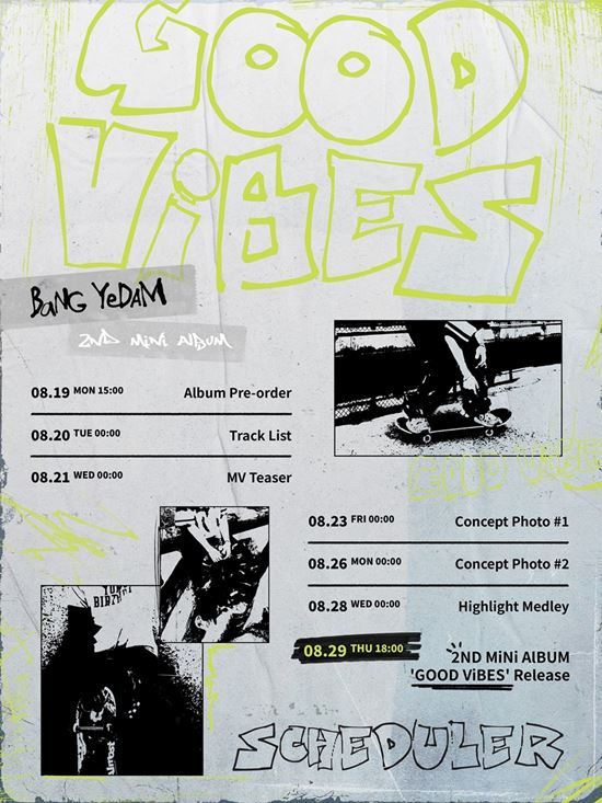 방예담은 16일 0시 공식 SNS를 통해 미니 2집 'GOOD VIBES(굿 바이브즈)' 스케줄러를 공개했다.