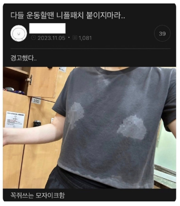 다들 운동할땐 니플패치 붙이지마라..jpg