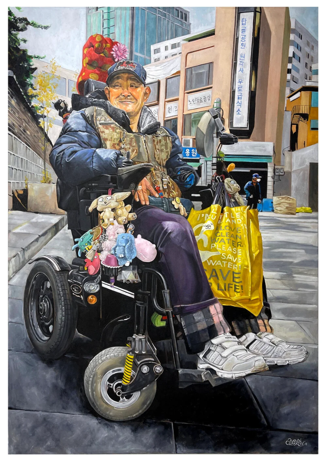 "서울의 길거리에서 발견한 아름다움을 유화로 초상화를 그려 솔직히 기록 했습니다. 한국은 빠른 속도로 발전하면서 나이든 세대들이 서서히 사라져 가고 있습니다. 이 초상화들은 캔버스에 유화로 그렸어요. 이 작품들은 서울 곳곳에 전시될 것이고 모델들에게는 초상화를 선물로 드릴 거예요. 서울 거리는 제게 비공식적 미술 학교 같은 역할을 합니다."