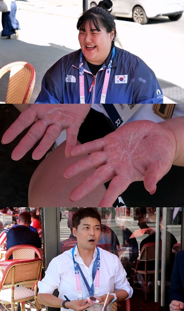 특히 박혜정이 파리 올림픽에서 299kg 역기를 들어 올린 손바닥을 처음 공개한다. 공개된 스틸 속 박혜정의 손바닥은 굳은살이 가득 박인 갈라진 손바닥으로, 전현무는 이를 보자마자 “아이고”라는 탄식을 내뱉으며 박혜정에게 “혜정아, 핸드크림 선물해 줄게”라고 마음을 전한다. 이에 박혜정은 “핸드크림 그만 주셔도 돼요. 생일 선물로 제일 많이 받아요”라며 전현무의 마음 씀씀이에 웃어 보인다고.