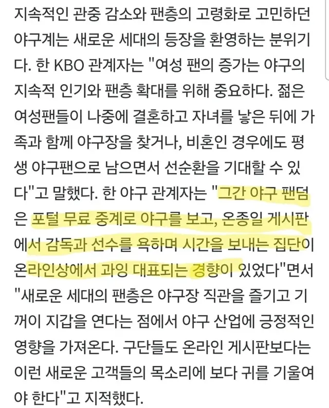 야구문화가 점점 여초화되면서 기존팬들의 불만이 높아지는 가운데