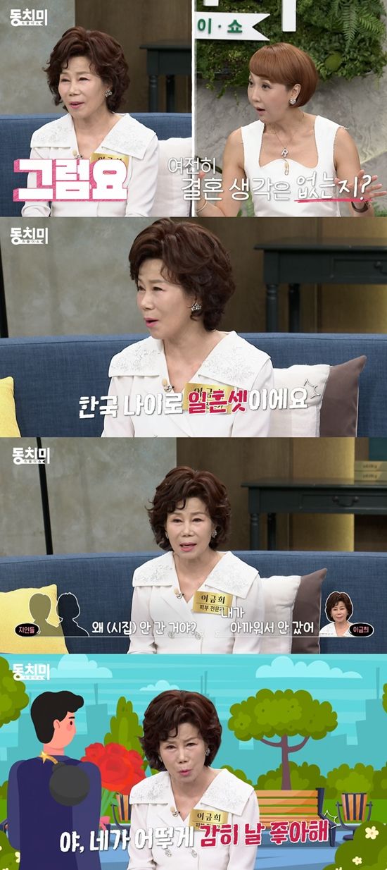 이금희는 "제가 52년 생이다. 한국 나이로 일흔셋"이라며 "어딜 가면 항상 소개팅을 제안하면서 '왜 시집 안 간 거야' 물어보는데 '내가 아까워서 안 갔어'라는 말로 말문을 막는다"고 했다.