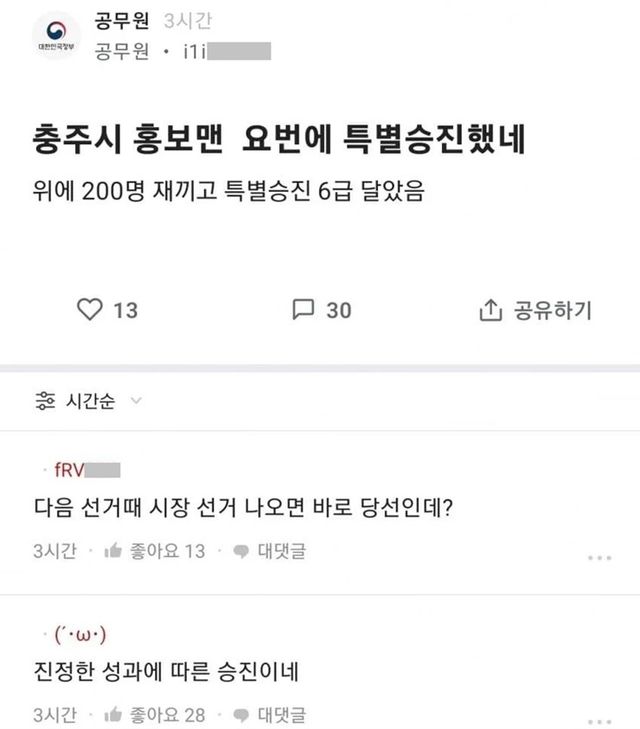 위에 200명 제끼고 6급 특별승진한 충주시 홍보맨 반응