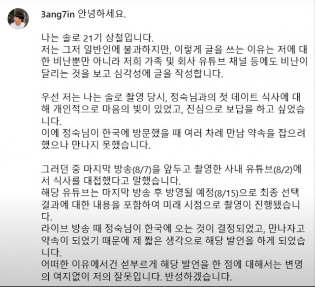 이후 상철 입장문과 계속되는 정숙의 폭로