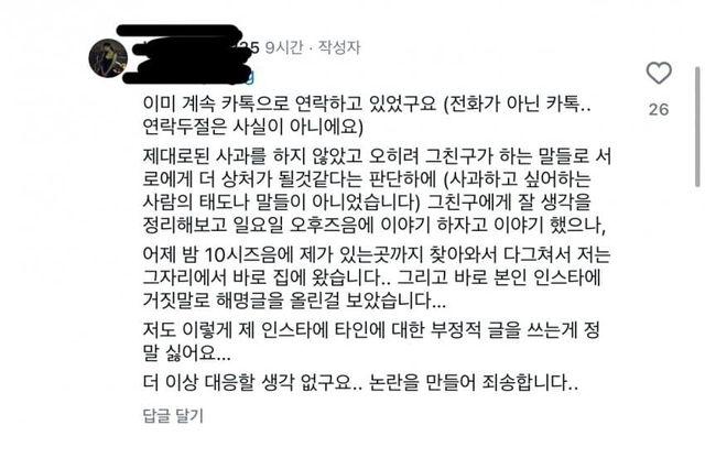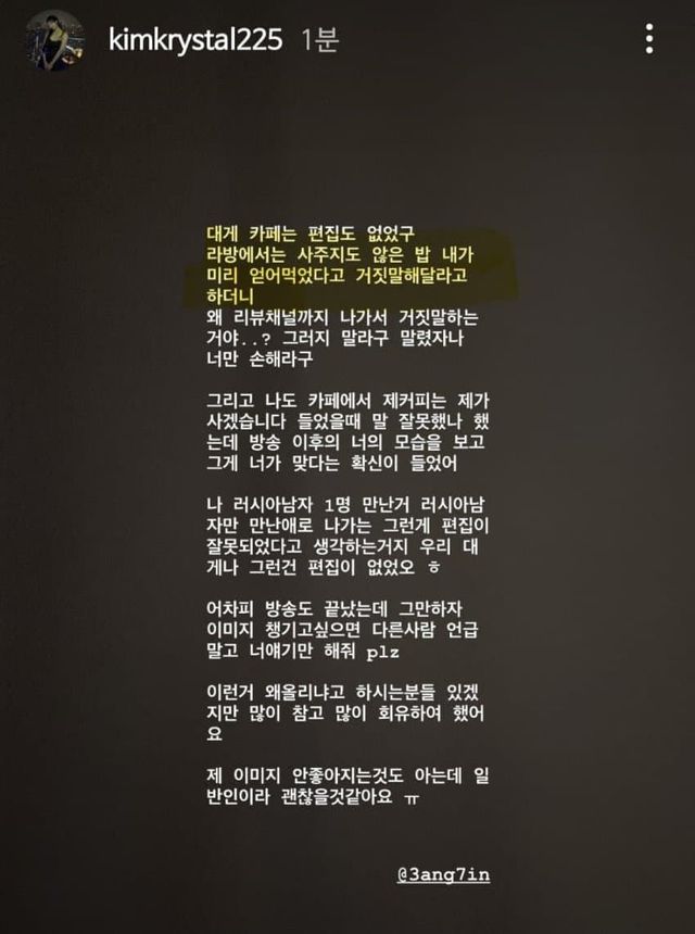 그리고 상철이 밤 10시에 직접 찾아왔다는 정숙의 인스타 댓글