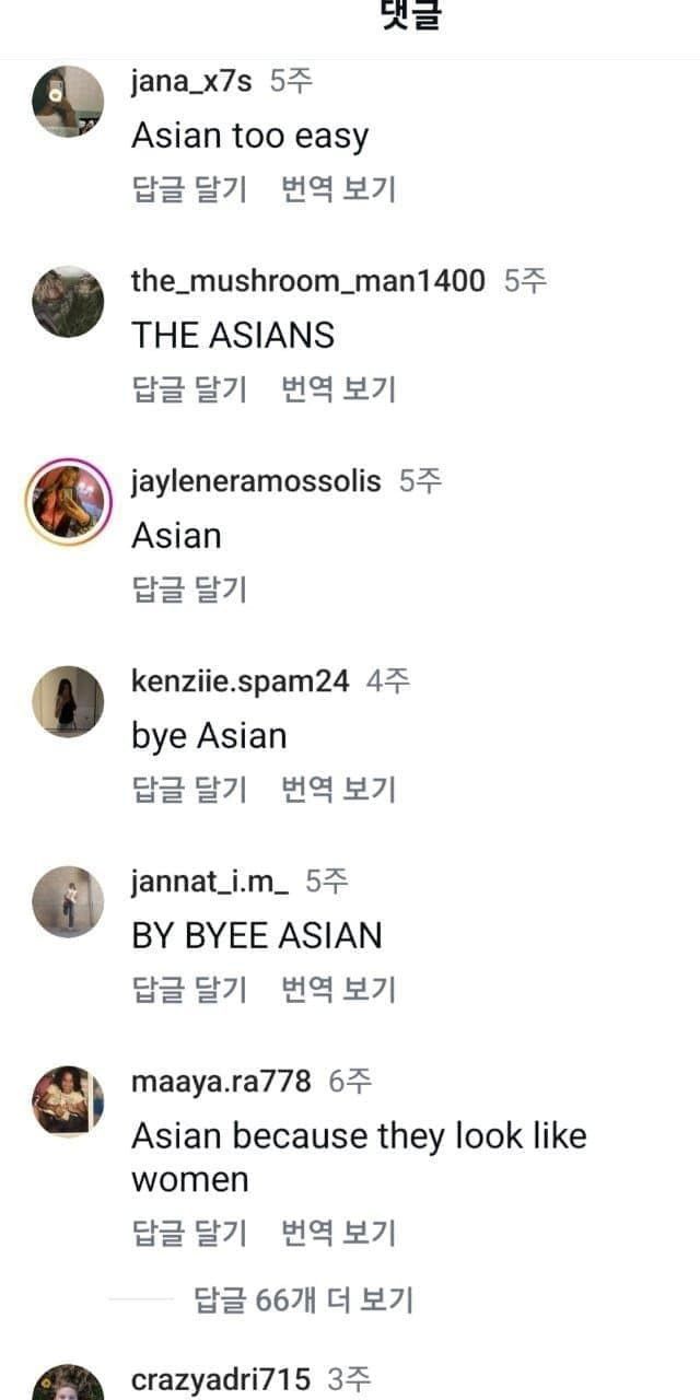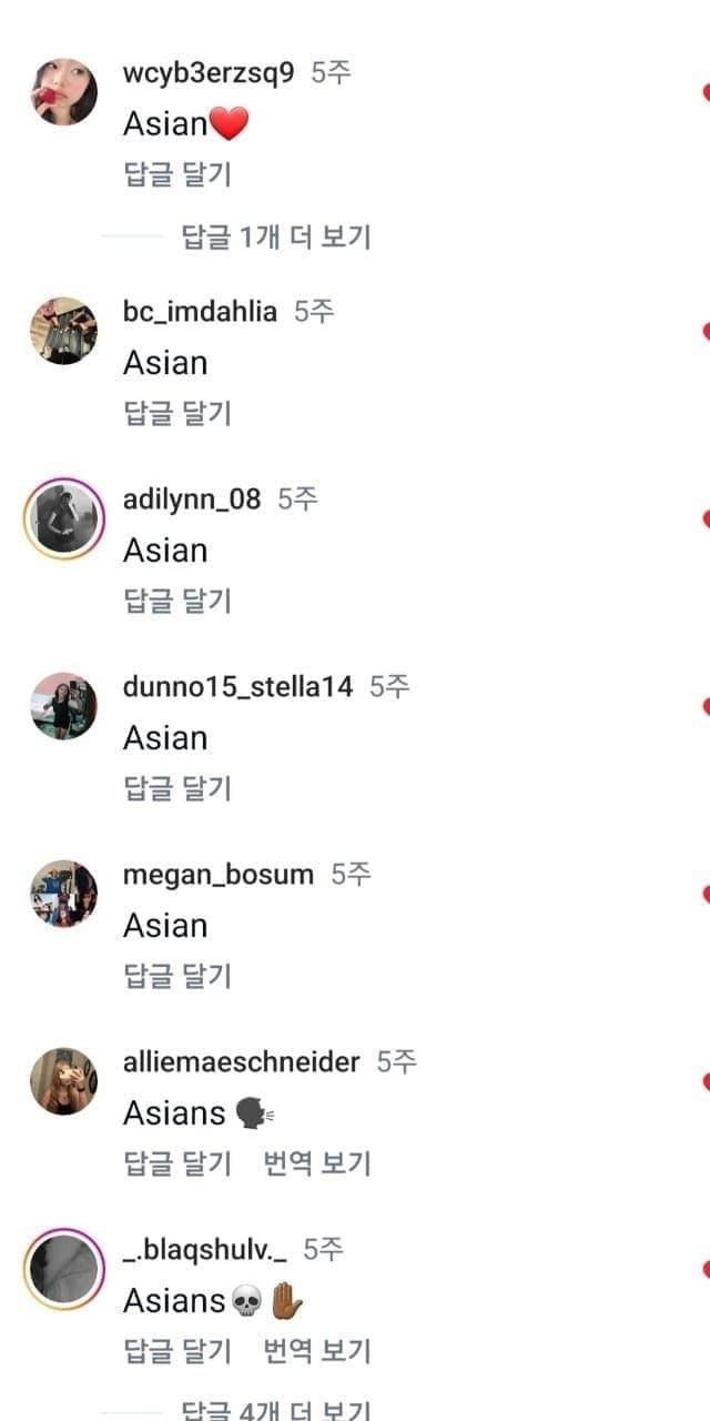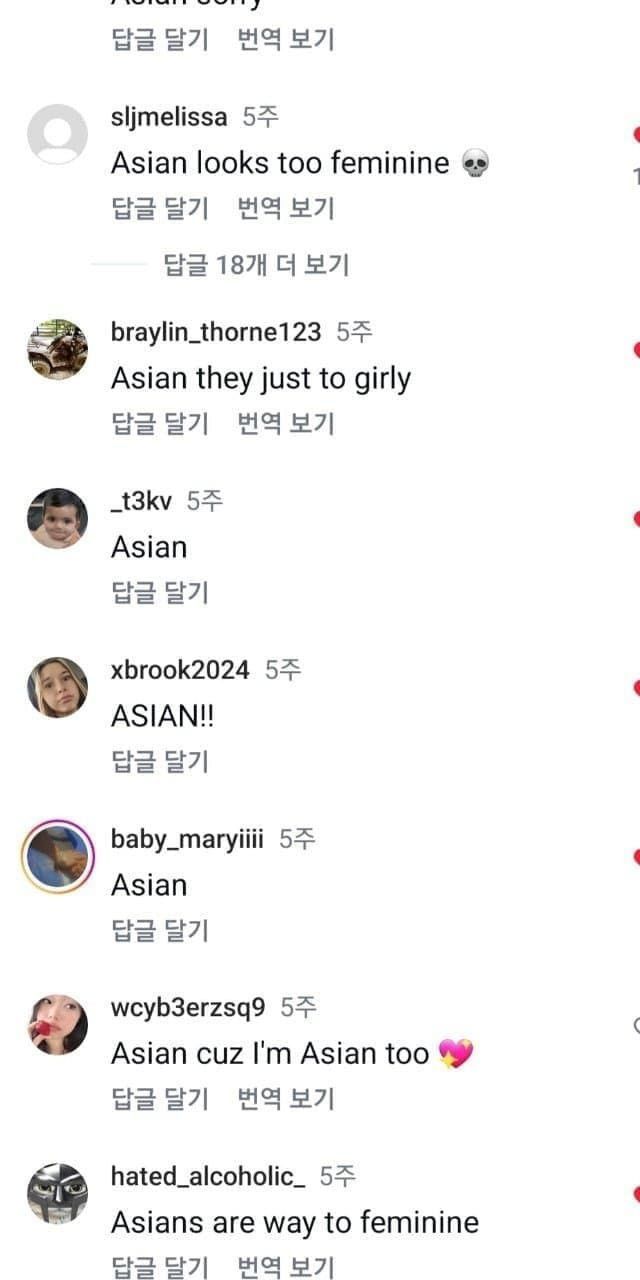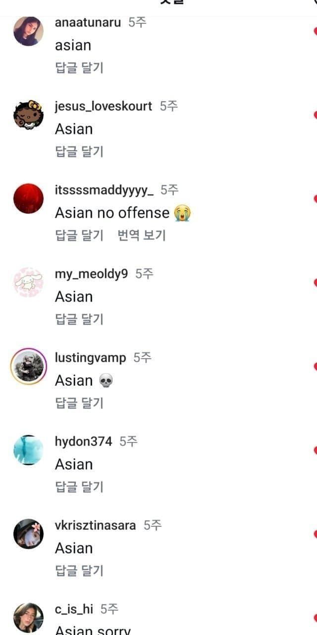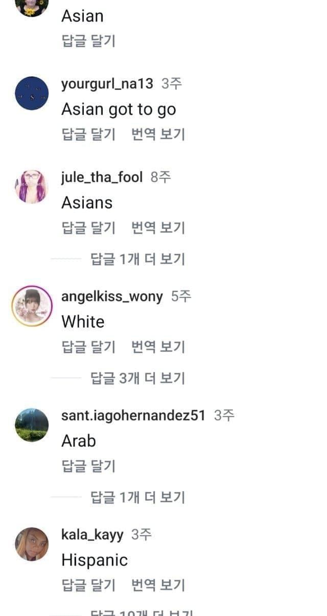 댓글은 압도적으로 아시안 남자가 뽑힘