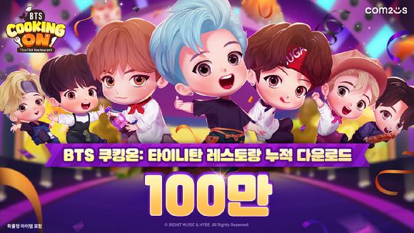 [아이뉴스24 정진성 기자] 컴투스(대표 남재관)는 신작 요리 시뮬레이션 게임 ‘BTS 쿠킹온: 타이니탄 레스토랑(이하 BTS 쿠킹온)’이 글로벌 100만 다운로드를 달성했다고 19일 밝혔다.