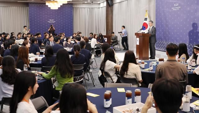 19日,在韩国外交部大楼,韩中青年交流项目韩国代表团访华启动仪式举行。【图片提供 韩联社】