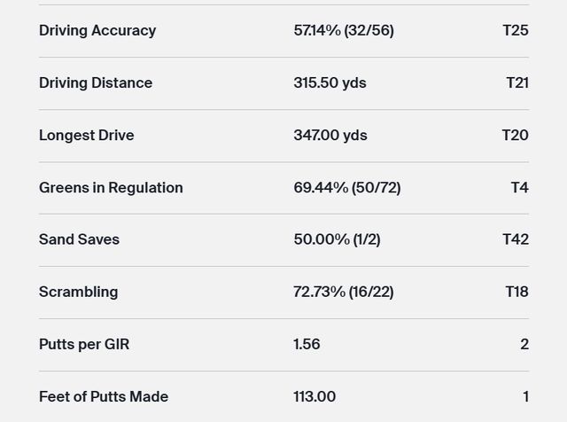 △DRIVING ACCURACY(페어웨이 안착률)=대부분 14개홀에서 페어웨이로 들어간 것을 %로 표시한 것.