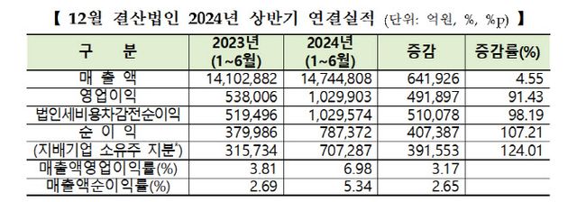 상반기 영업이익은 102조 9903억원으로 같은 기간 91.43% 급증했다. 순이익 또한 78조 7372억원으로 107.21% 늘었다.