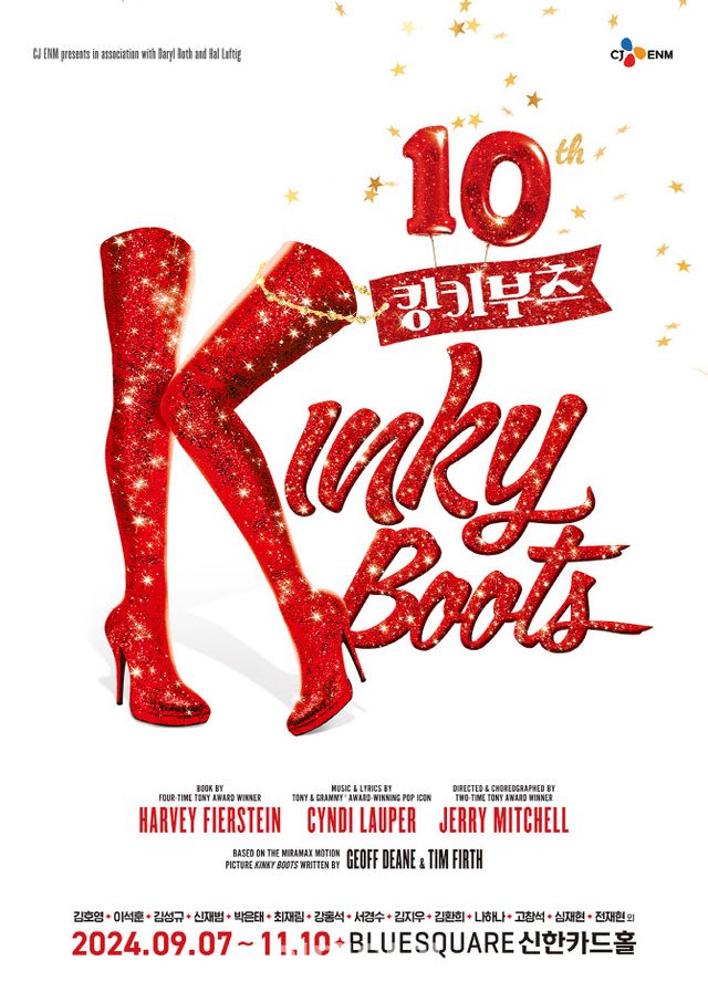 한편 ‘킹키부츠’는 영국 노샘프턴의 수제화 공장들이 경영악화로 폐업하던 시기 유일하게 살아남은 구두공장의 성공기를 각색해 만든 작품이다. 브로드웨이의 대표 연출가 제리 미첼의 감각적인 연출과 세계적인 아티스트 신디 로퍼의 흥겹고 세련된 음악이 어우러진 공연으로 ‘토니어워즈’에서 작품상을 비롯한 6개 부문을 휩쓴 바 있다.