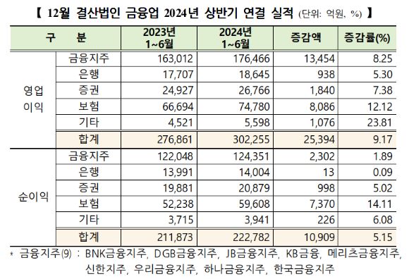한편 상반기에는 금융사의 실적 성장세가 돋보였다. 총 46개 금융사 중 41사가 영업이익과 순이익의 증가를 달성하며 수익성이 개선됐다.