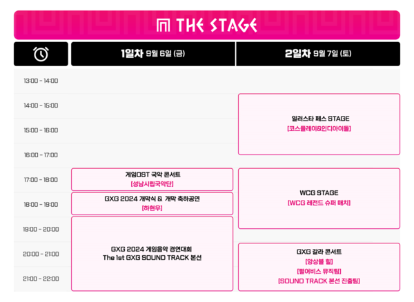 이번 행사는 ‘음악’을 메인 테마로 하여, 다채로운 장르의 공연이 진행될 예정이다. 먼저 9월 6일 개막 공식행사 전 진행되는 사전 축하공연으로, 글로벌 게임사들의 인기 게임OST가 국악으로 재해석되어 연주되는 ‘게임OST 국악 콘서트’가 펼쳐진다.