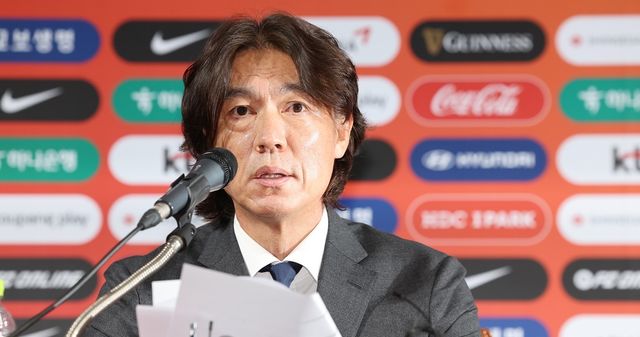 홍명보 한국 축구 국가대표 감독이 지난 7월 29일 오전 서울 종로구 축구회관에서 열린 취임 기자회견에서 발언하고 있다. / 연합뉴스
