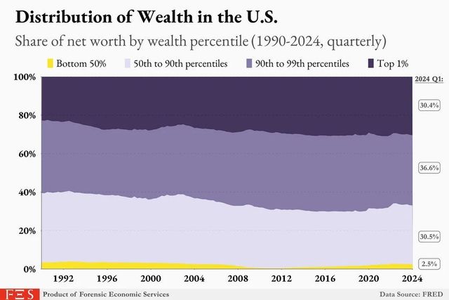 하위 50%는 전체 부의 단 2.5%만을 차지함