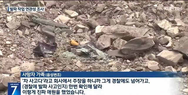 - 노동청과 경찰은 발파로 인한 사고 가능성을 조사도 안 해서 유가족이 CCTV와 휴대폰을 확인해 발파 작업이 이루어진 사실을 밝혀냄