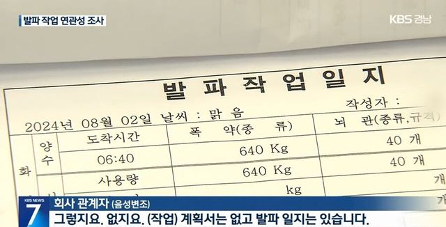 - 노동청과 경찰은 뒤늦게 발파 사고 가능성과 중대재해 관련 조사하겠다고 함