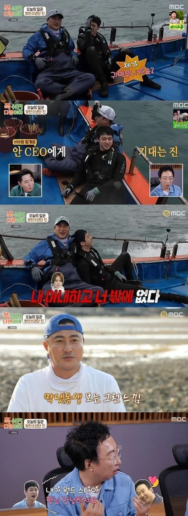 방탄소년단 진이 특유의 유머와 친근함으로 축구선수 출신 방송인 안정환의 마음을 사로잡았다.